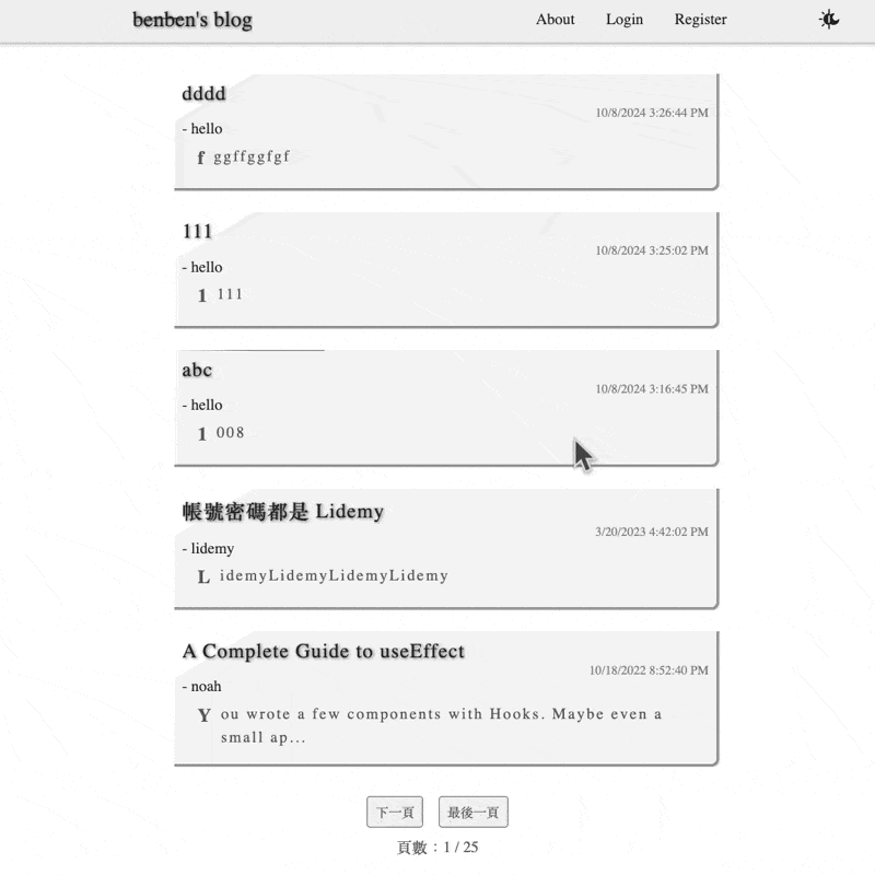 使用 Redux toolkit 做的 Blog,可以新增、修改、刪除文章,並有會員系統可以註冊、登入。