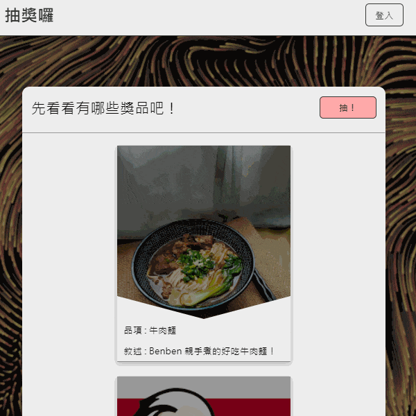 使用 Express 跟 Sequelize 做的抽獎器,可以抽獎並設定獎品名稱跟中獎機率。